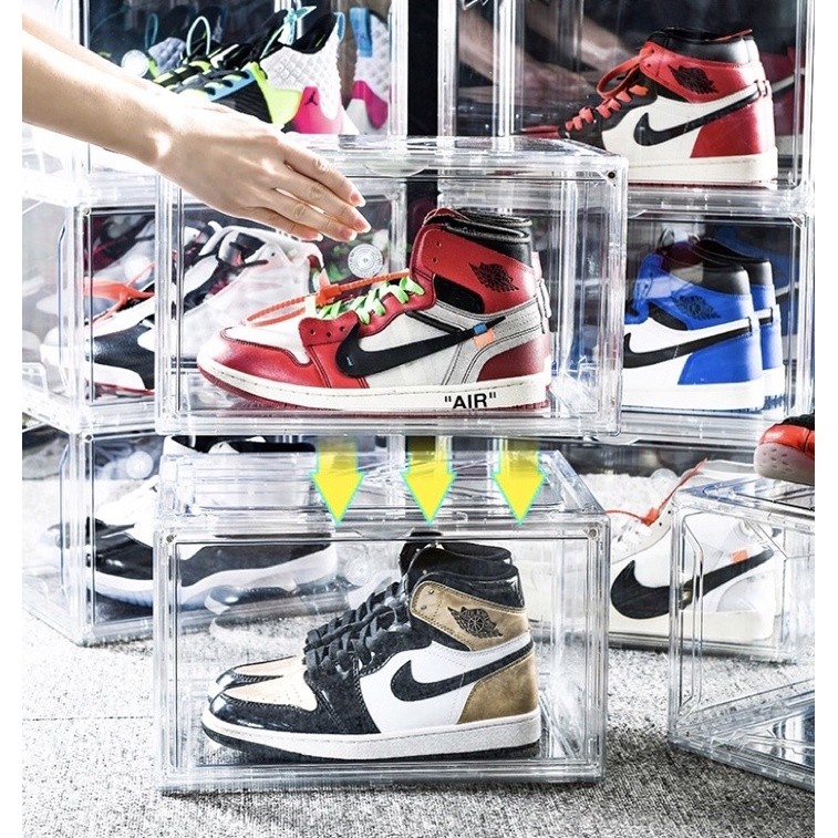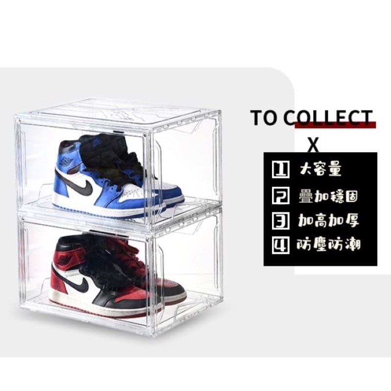台湾现货 ?? 免运 附发票 透明鞋盒 磁吸 侧开 加厚款 硬盒 球鞋收纳 稳固叠加 鞋盒