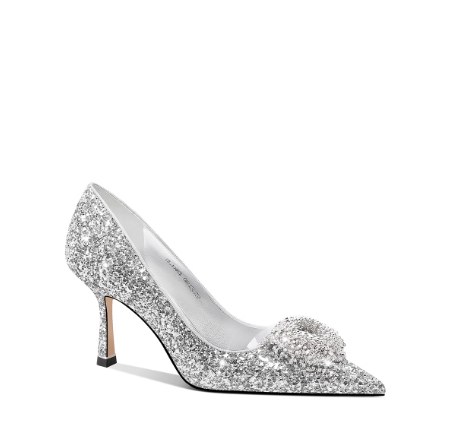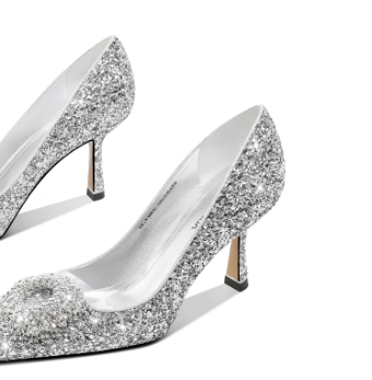 公主鞋银色尖头高跟鞋女主婚鞋新娘伴娘水晶鞋平时可穿空气棉