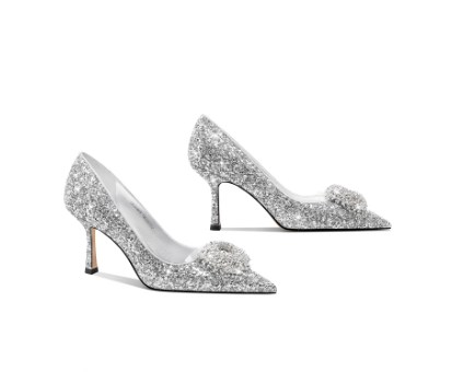 原创设计师款水晶鞋婚鞋雪花扣尖头高跟鞋女细跟单鞋