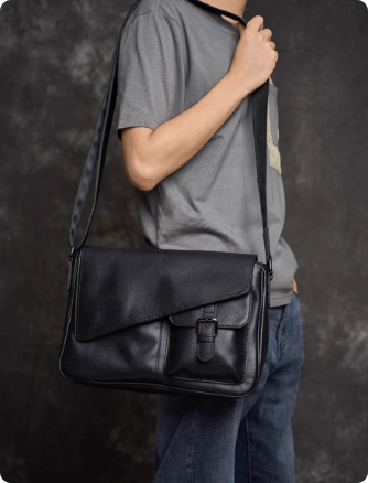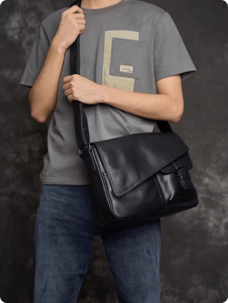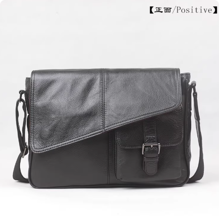 简约通勤男士真皮单肩斜挎包植鞣牛皮随身小包横款方形邮差包潮牌