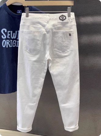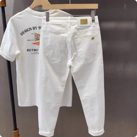 潮牌高端时尚白色九分牛仔裤男春夏潮流百搭修身小脚休闲裤子