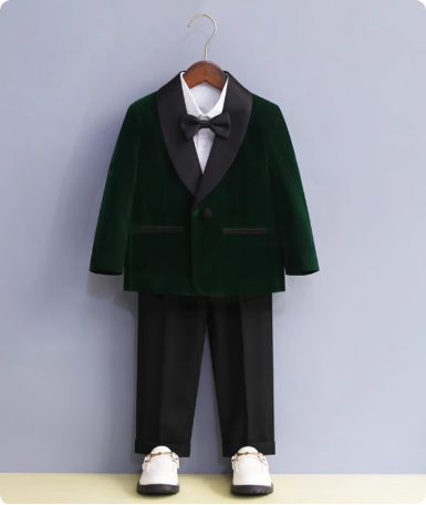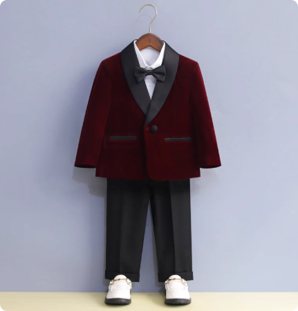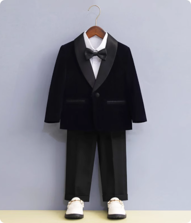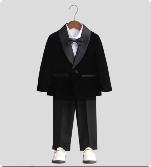 男童秋季英伦风丝绒纯色西装礼服套装宴会钢琴表演服