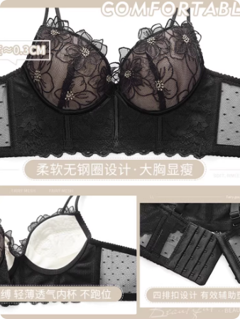 调整型内衣女无钢圈小胸聚拢性感蕾丝美背无痕夏季文胸套装