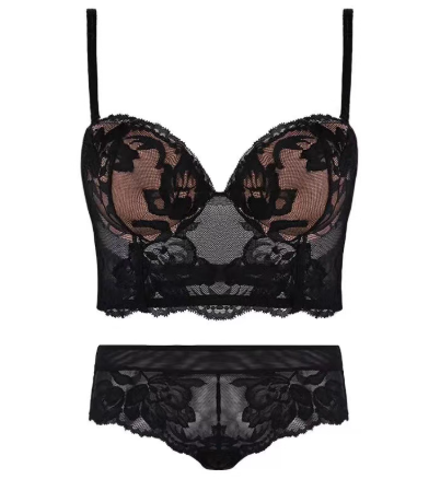 法式美背内衣女小胸无痕文胸聚拢收副乳防下垂性感蕾丝套装