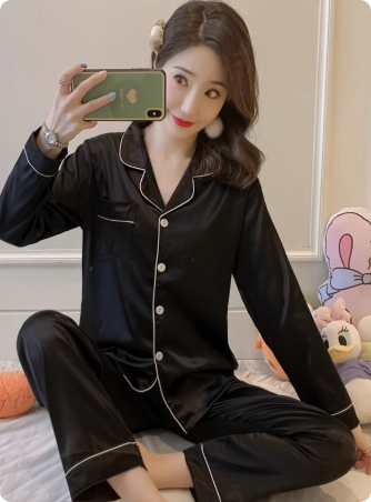 春秋睡衣女士夏季冰丝薄款丝绸可爱甜美大码宽松家居服两件套装夏