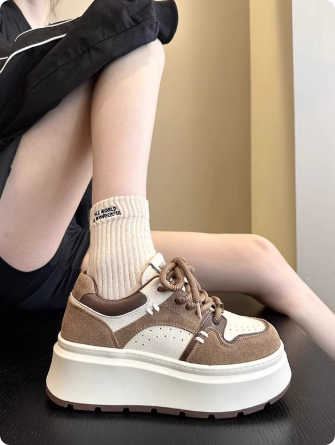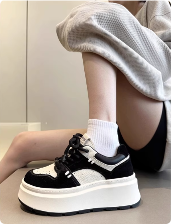 真皮松糕厚底女鞋小白鞋小个子韩版学生熊猫拼色板鞋