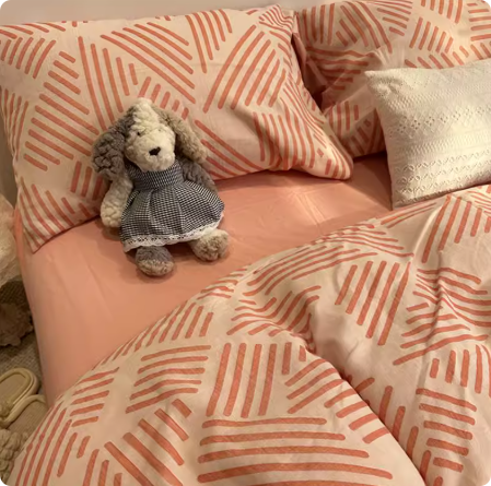 粉色水洗棉提花简约格四件套全棉纯棉粉色1.5m被套