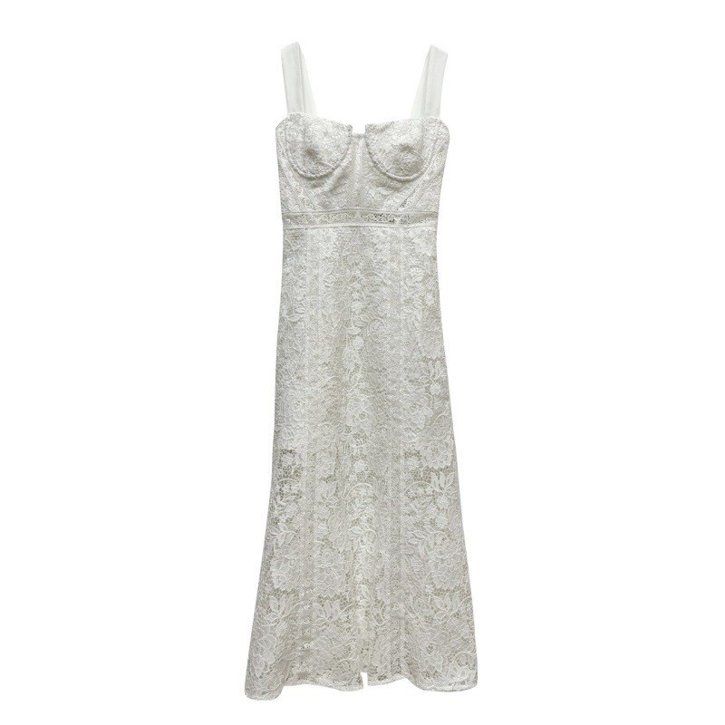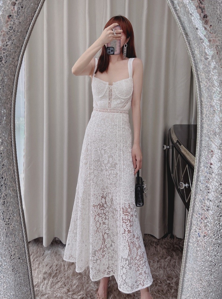 2024年新款性感露肩露背修身收腰气质显瘦吊带连衣裙白色蕾丝长裙