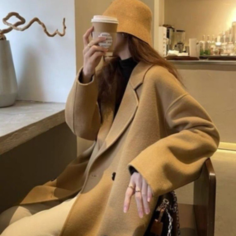 高级感双面羊绒纯羊毛大衣女2024秋冬新款韩版宽松中长款外套女装