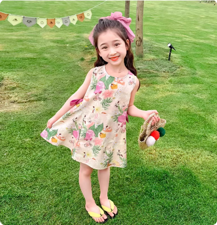 女童纯棉背心连衣裙夏季2025新款儿童无袖沙滩碎花裙子公主裙