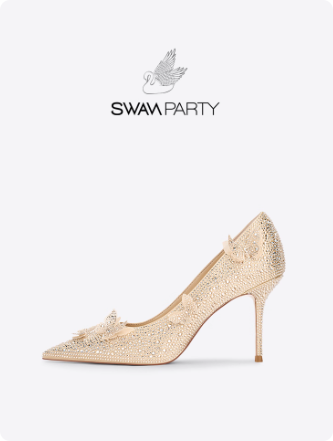 2025年秋季新品蝴蝶绸缎高跟鞋婚鞋女满钻气质单鞋