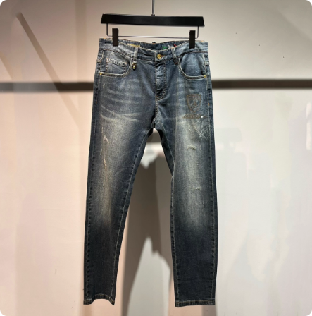 兰博基尼 春夏款男装休闲牛仔裤微弹烫钻柔软蓝23730