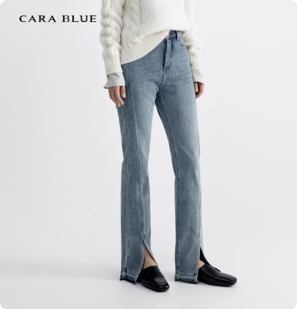 CARABLUE 休闲开叉直筒牛仔裤 KB233MJP0002