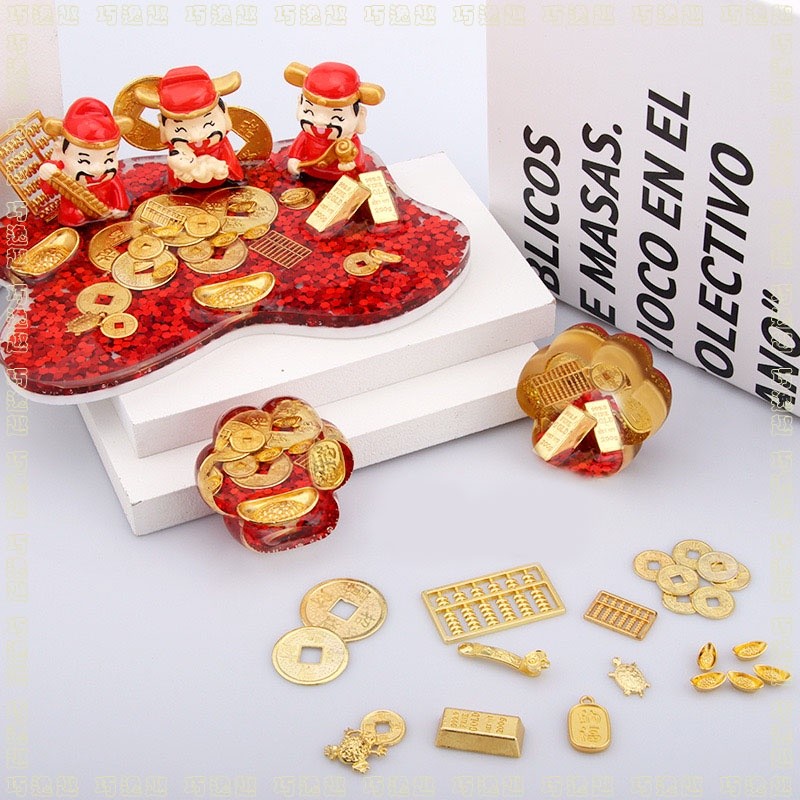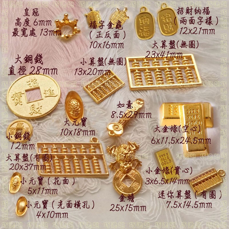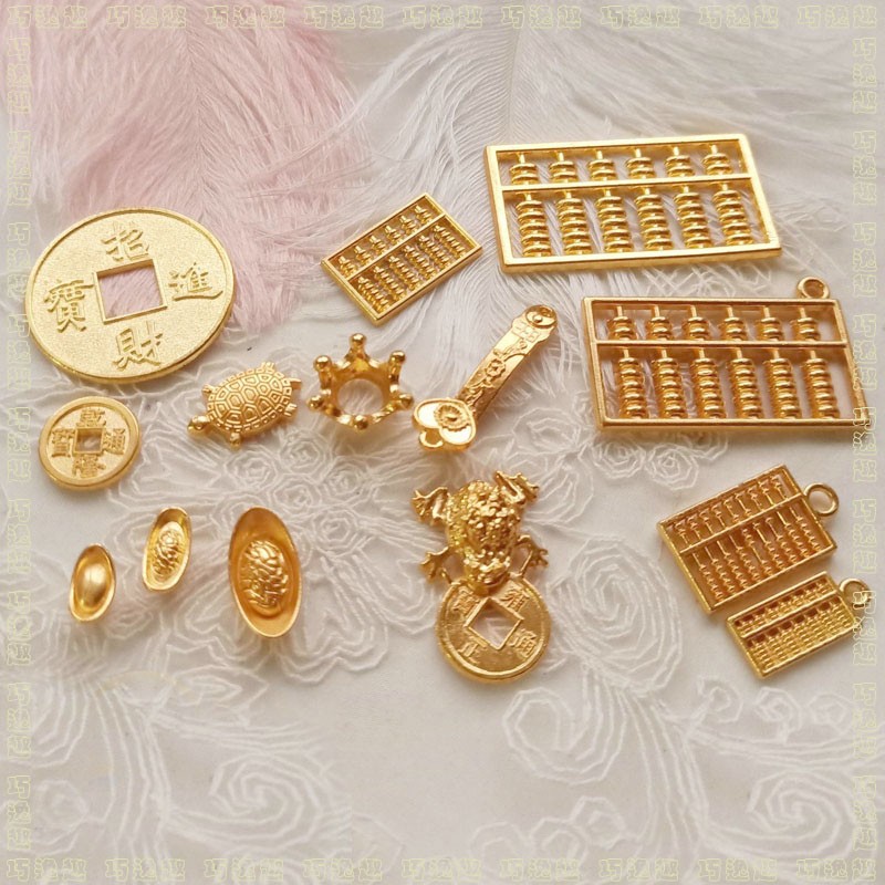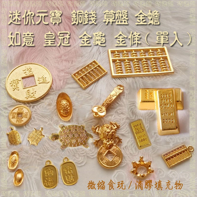 巧逸趣※迷你袖珍 铜钱 皇冠 金龟 金蟾 金条 如意 元宝 算盘(单入)@锌合金开运配件 龟 金砖 史莱姆滴胶填充物