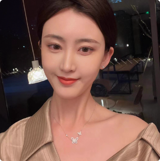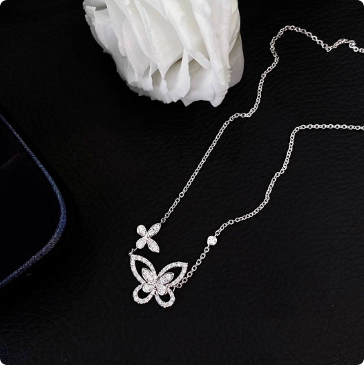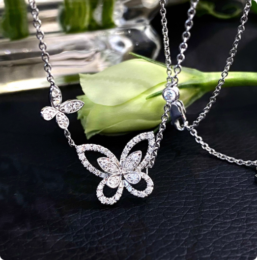 定制咨询客服celia6724848,双蝴蝶项链(铂金+培育钻)