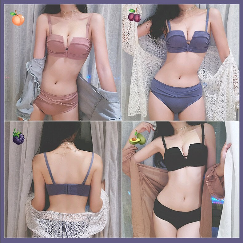 Maniyun 性感文胸三角裤内衣套装女式无钢圈聚拢文胸胸罩