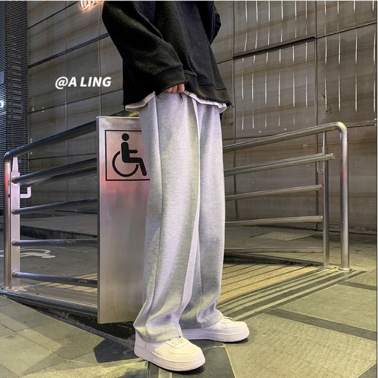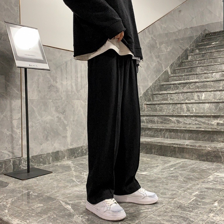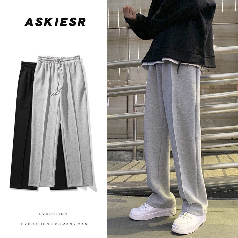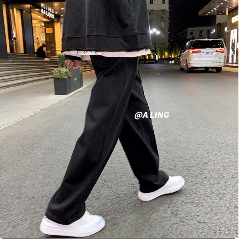 NeverSeez 休闲长裤 Ins坠感裤子 男 秋冬季 韩版潮流 阔腿裤 拖地裤 加绒加厚 宽松直筒裤