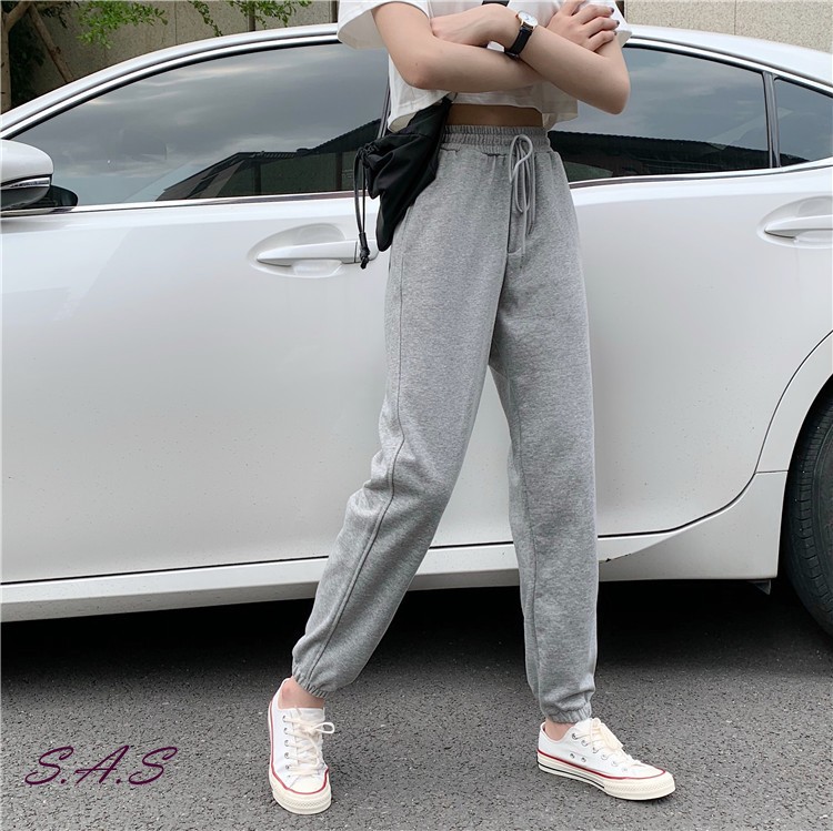 灰色哈伦棉裤 显瘦高腰休闲裤 哈伦裤 棉裤 宽松百搭束脚运动裤 运动裤 休闲裤 长裤 高腰 显瘦 SAS 【1231P】