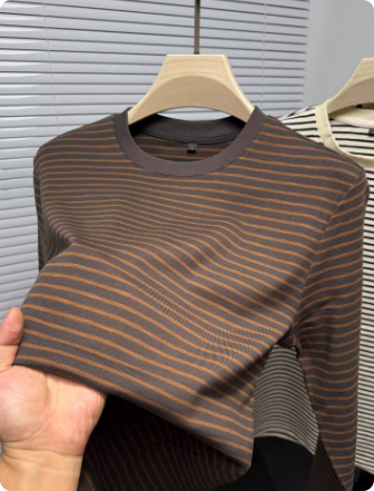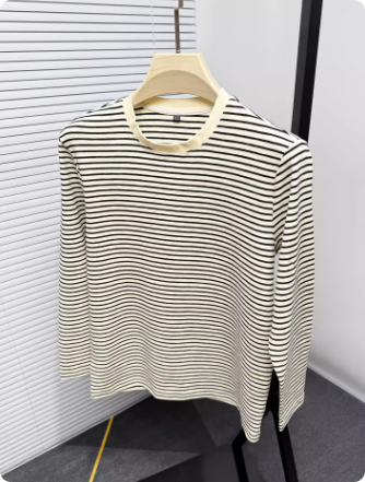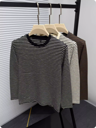 高级感黑白条纹长袖t恤男士春秋季新款潮流圆领休闲纯棉打底上衣