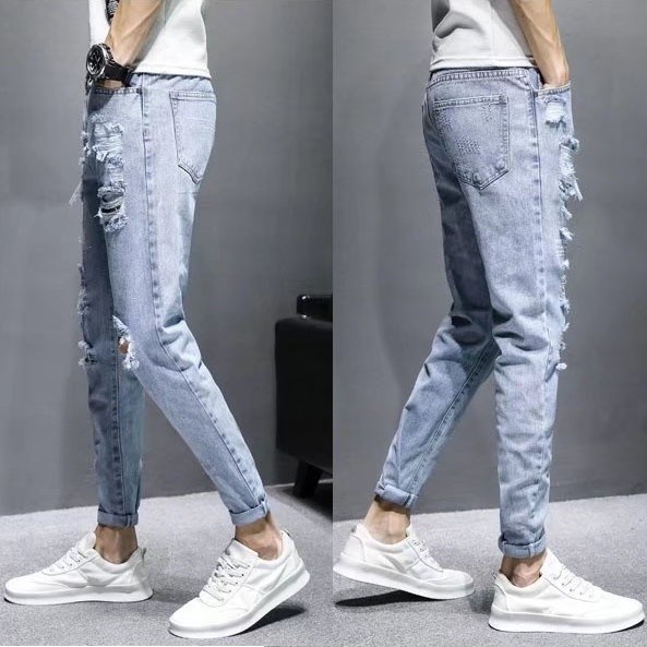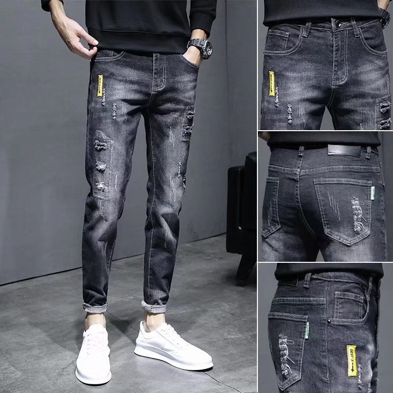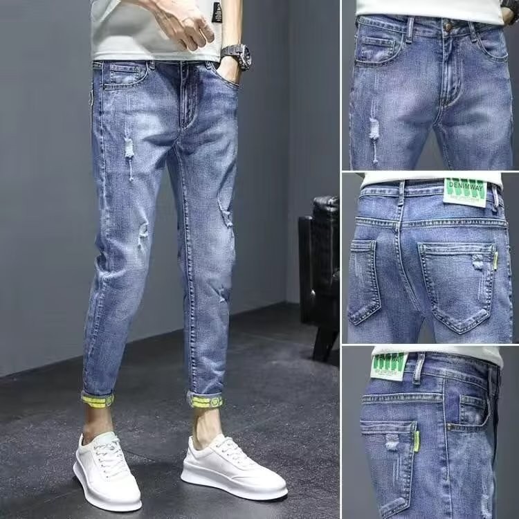 【宅男屋】多款可选 潮流刷破牛仔裤男 重磅潮牌修身 牛仔小脚裤 韩版九分裤 破洞休闲破洞牛仔裤 男生长裤 TOK55
